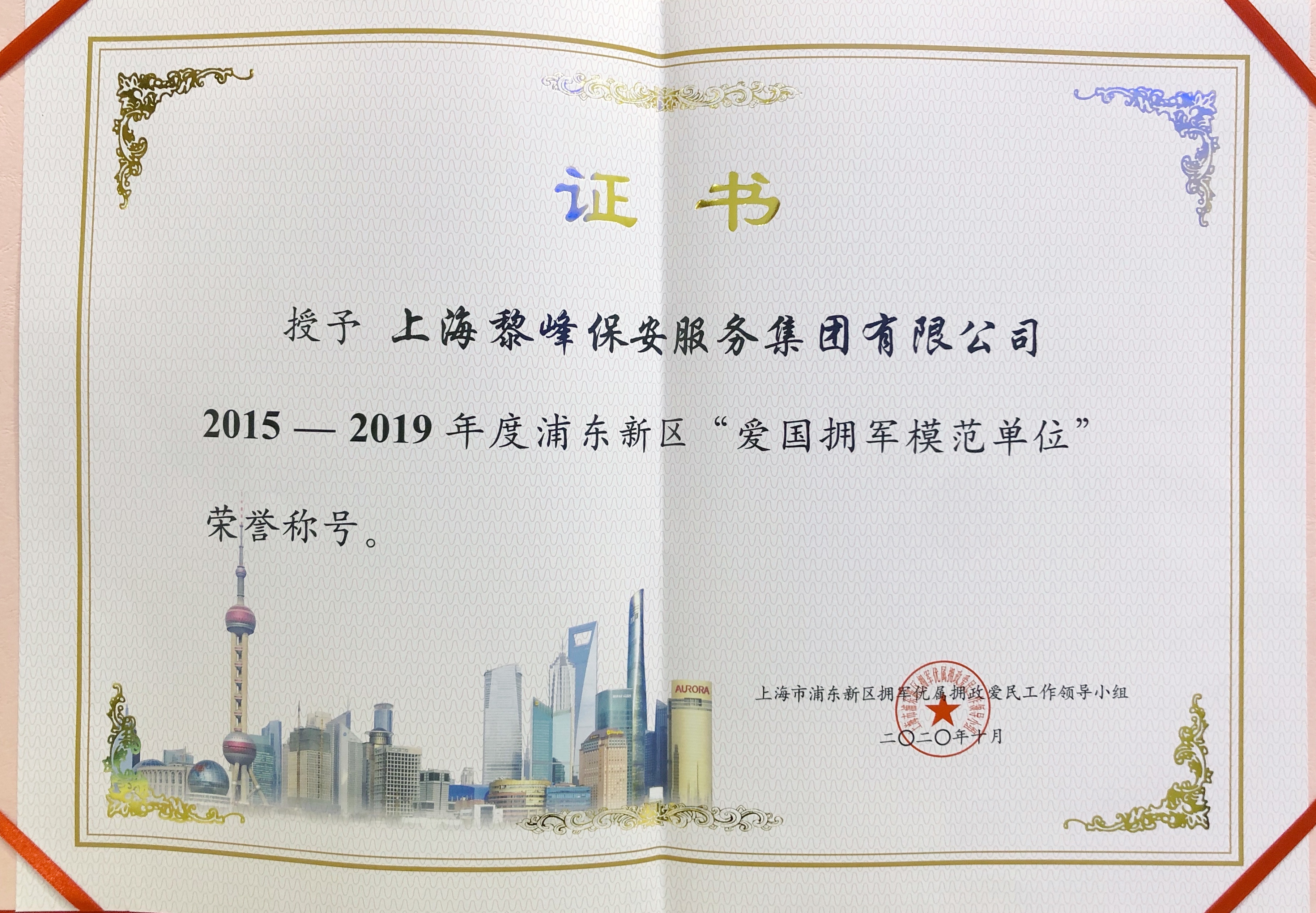 2015年 獲得上海市浦東新區(qū)“文明單位”稱號的首家保安服務(wù)公司