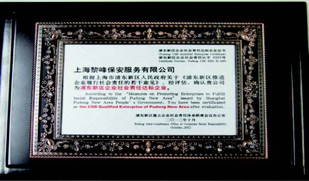 2012年 成為上海市浦東新區(qū)保安協(xié)會副會長單位